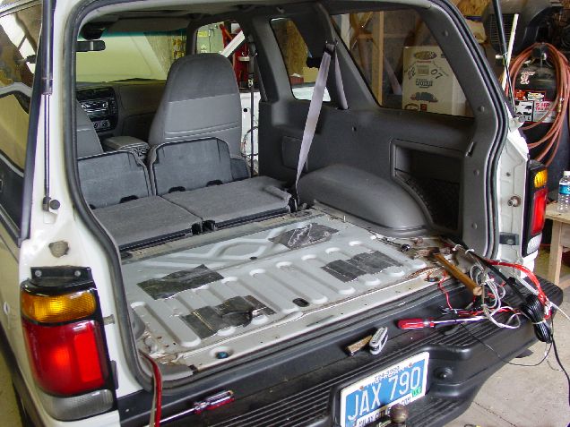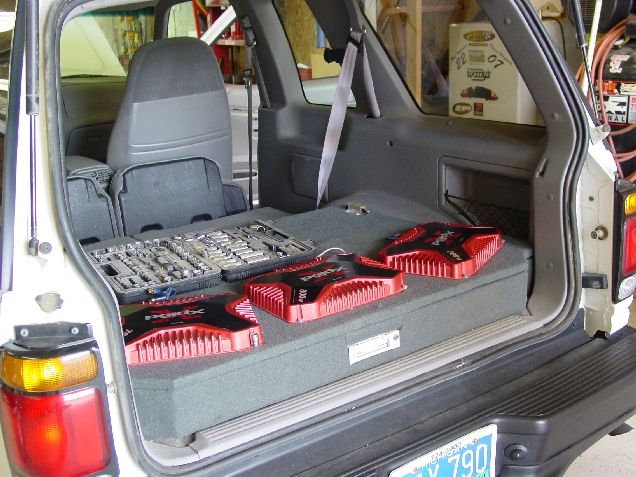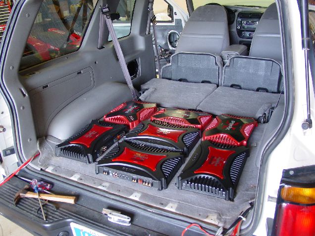 This is the second stereo installation I have put in this vehicle. I basically just wanted something that would get as loud as I like to crank it up sometimes. So I set out to put lots of speakers and lots of amplifiers in this one. It only sounds just OK for clarity, but it is freaking loud. My friend Darryl and my dog Taz helped out with install that took us 2 and a half weeks.