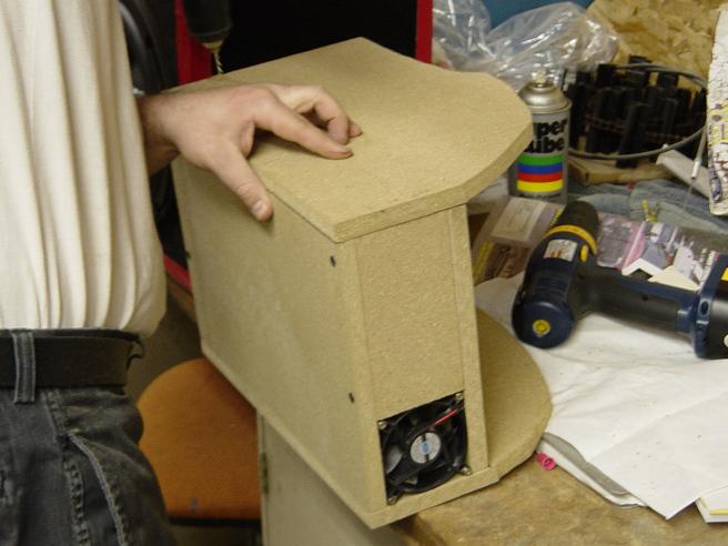 Here is one of the side trunk boxes to hold the amp. A fan was installed to make sure the amp had enough cooling.